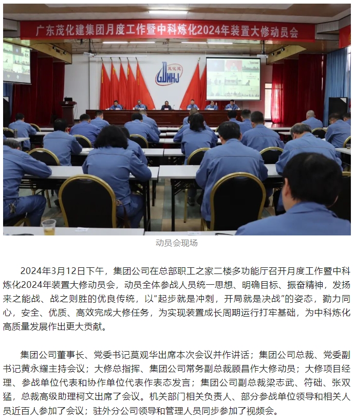 集團(tuán)公司2024年中科煉化裝置大修動(dòng)員會(huì)召開(kāi)