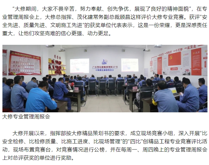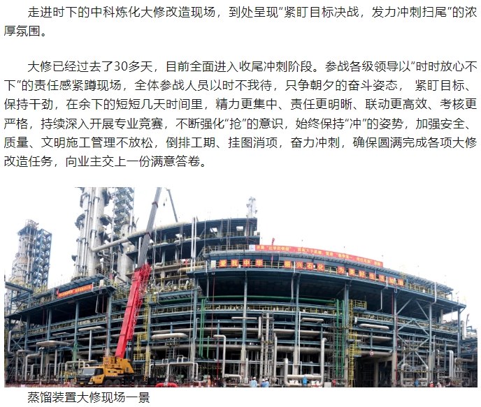 緊盯目標(biāo)決戰(zhàn) 奮力沖刺掃尾——走馬2024年中科煉化裝置大修改造大會(huì)戰(zhàn)現(xiàn)場(chǎng)