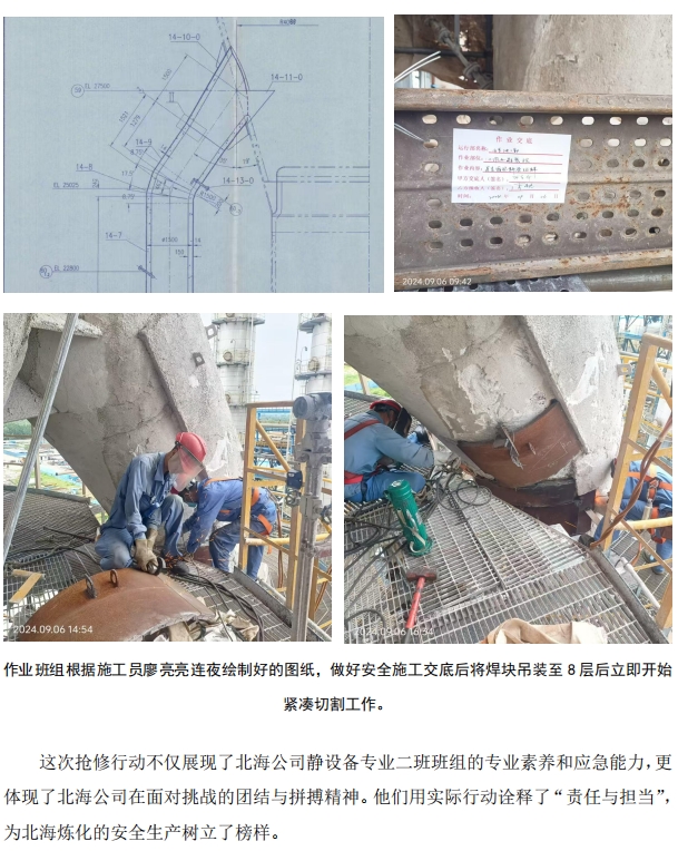 臺風前夕!北海公司對 1#催化再生循環(huán)斜管貼焊搶險