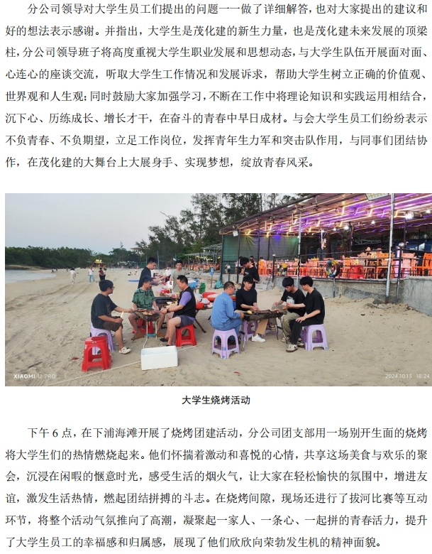 洋浦分公司團(tuán)支部組織大學(xué)生座談會(huì)暨團(tuán)建活動(dòng)