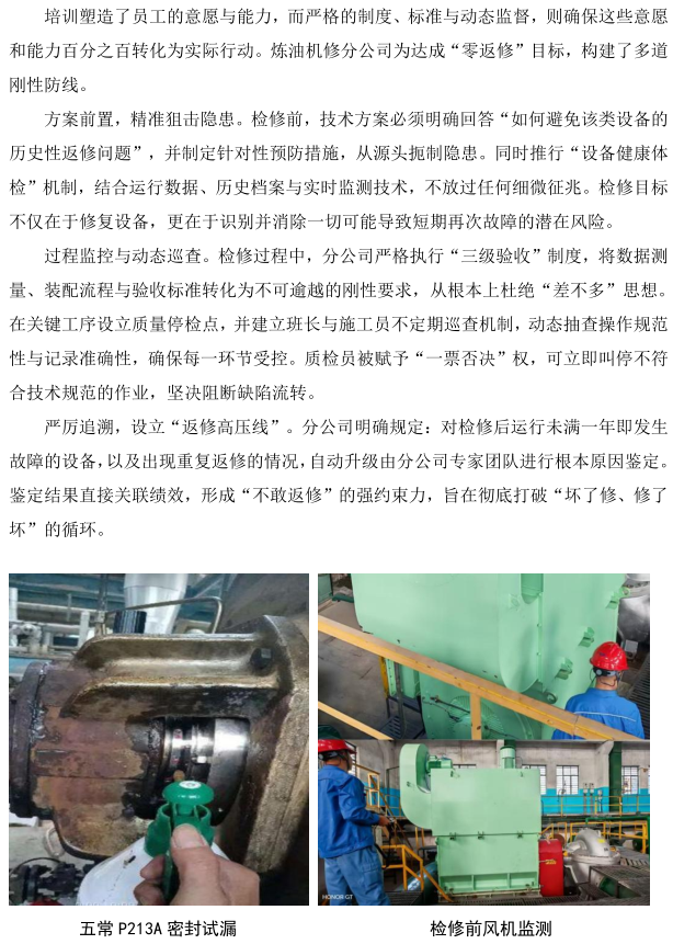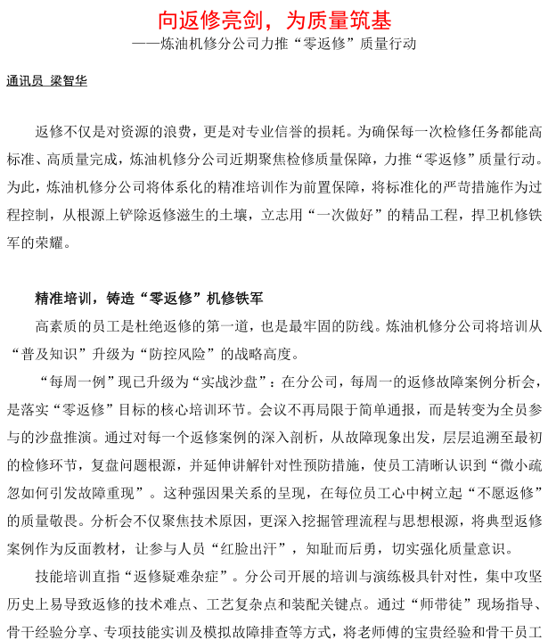 煉油機(jī)修分公司力推“零返修”質(zhì)量行動(dòng)