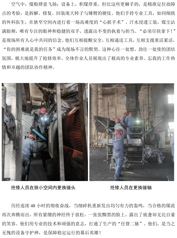北海中科項(xiàng)目部輸儲(chǔ)煤裝置細(xì)碎機(jī)搶修攻堅(jiān)戰(zhàn)