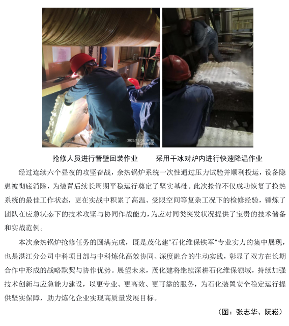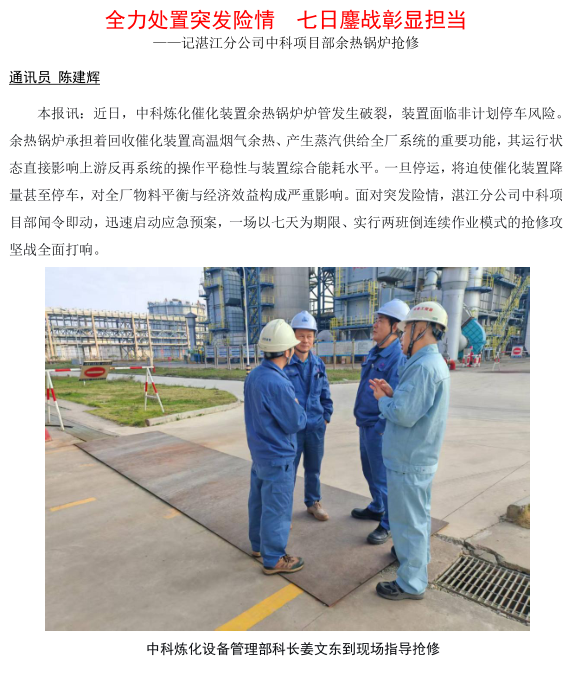 湛江分公司中科項(xiàng)目部余熱鍋爐搶修